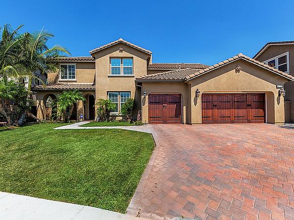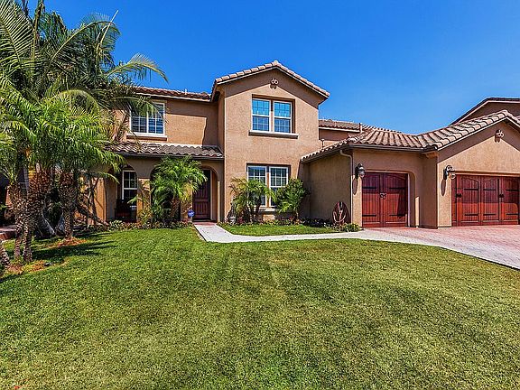 Masterful design and modern luxury are uniquely embodied in this 5 bedroom, 5 bathroom home in Eastvale! This custom beauty has 4,522 square feet of open living space that flows effortlessly from curbside to entry. Upon entering, you are welcomed to a large foyer with an elegant chandelier, custom tile flooring and high ceilings. The wine closet with the custom wrought iron door is ideal for the wine enthusiast. The gourmet kitchen is open to the family room and includes stainless steel appliances, granite counter tops, microwave, custom refrigerator, kitchen island and a butler's pantry. Family room has a built in media center, ceiling fan and a fireplace perfect for those relaxing nights. Downstairs features a junior master suite with a master bathroom that includes a double sink vanity, standing shower stall and spa tub. This home features a theatre/media room upstairs that is spacious, wired and ready to use. The master bedroom is amazing and includes a master retreat with a fireplace. The master bathroom includes a spa tub, separate shower, separate vanity, dual sink and beautiful cabinets. This home has crown molding, recessed lighting, ceiling fans and light dimmers throughout the home. The garage features custom cabinets and epoxy flooring. The custom wood garage doors and paver driveway give this home great curb appeal. With so many features and upgrades, this home will not last long!