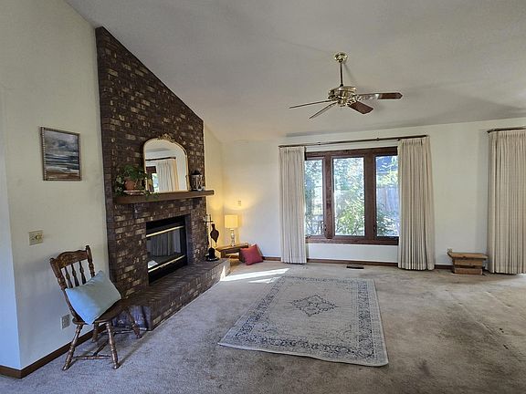 Charming brick fireplaceFully fenced backyardMain-floor laundryOpen-concept layoutBright sunroomSplit-bedroom floor planTall vaulted ceilings