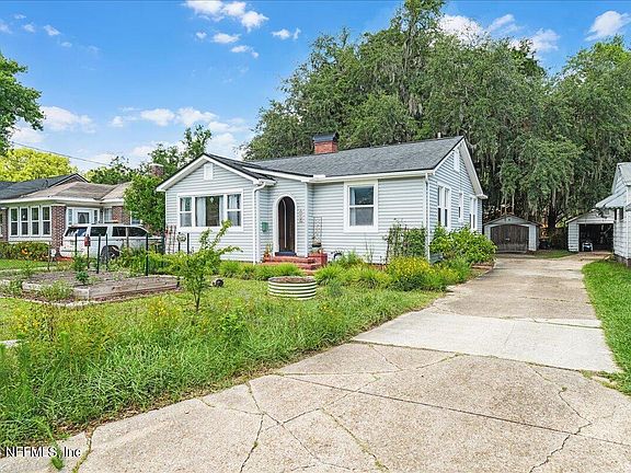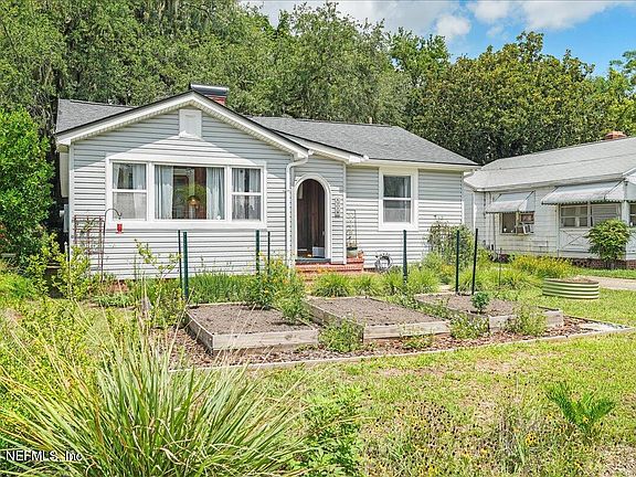 This stunningly remodeled bungalow balances the perfect combination of historic charm & modern upgrades. Enjoy peace of mind with new HVAC and water heater, plus updated plumbing & light fixtures. With refinished hardwood floors, new paint, & natural light pouring in throughout, you'll find something to love in every room. The remodeled kitchen boasts new flooring & lighting, butcher block countertops, beveled tile backsplash, new fridge, open shelving, & color-blocked cabinets. The bathroom features a shower/tub combo & restored floor tile and is situated between the two spacious bedrooms w/new cordless shades. Off the expansive living room is the sun room, perfect for home office, gym, den, and more! Relax or entertain on the back patio beneath the majestic live oak and fruiting mulberry, and enjoy the beauty of lower-maintenance native landscaping in the front yard. Additional storage space in the remodeled mud room off the back hallway, plus garage in the backyard. Convenient to I-95 and 295. Ask about lender incentives!