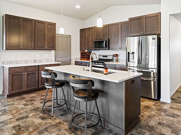 Price improvement! Like new, one adult owner rancher in a fantastic, convenient location close to Amazon, FAFB, Cheney, Airway Heights, and just 10 minutes to downtown Spokane! This 3BR, 2 BA Viking "Carolina" plan Great Room rancher offers 1601 sq ft of living space and a very open floor plan with vaulted ceilings. The surprisingly large living room is open to the spacious dining area and huge island kitchen. The kitchen boasts 42" tall cabinets, quartz counters, a large island with eating bar, and upgraded stainless steel appliances including gas range. Around the corner is your main floor laundry room and HUGE walk-in pantry! The oversized primary suite features a private 4 piece bath with garden tub, separate shower, double quartz vanity, and walk-in closet. Two more bedrooms and a second bath with quartz countertops complete the main floor. Sheet rocked, heated, and insulated 2 car garage, vinyl siding and windows, gas heat and central air, a covered patio, and no neighbors behind you. Beautiful home!
