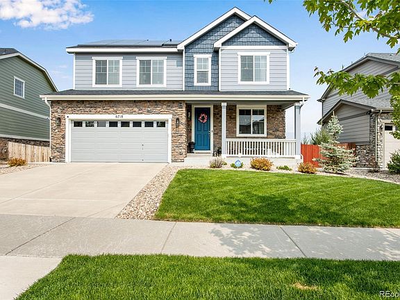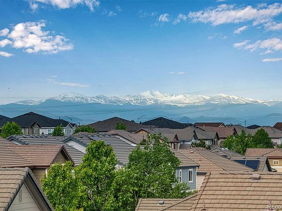 Enjoy amazing mountain views and spectacular sunsets off the deck of this charming Wheatlands 5 bedroom, 5 bathroom home with over 75k in recent updates. Nestled in a peaceful neighborhood, this residence offers a perfect blend of comfort, convenience, and community. As you step inside, you'll be greeted by a warm and inviting atmosphere. The well-designed layout boasts ample natural light, creating a bright and cheerful ambiance throughout. The spacious living area provides an ideal space for relaxation and entertainment, featuring tasteful finishes and a cozy fireplace. The kitchen is a chef's delight, equipped with modern stainless steel appliances, stylish cabinetry, and generous counter space. Upstairs, this home offers 4 bedrooms, 3 newly updated bathrooms all with granite vanity tops, laundry and a spacious loft area. The primary suite is particularly noteworthy, offering a peaceful haven with its own newly remodeled en-suite bathroom and walk-in closet. An additional bedroom offers an en-suite bathroom and all are perfect for accommodating family, guests, or creating a home office. The finished walk-out basement provides a sunny living space, a bedroom and a bathroom. Outdoor enthusiasts will appreciate the well-maintained backyard. Whether you're enjoying a cup of coffee on the new lighted Trek deck (installed Sept 2021) or hosting a barbecue with friends, this outdoor space offers endless possibilities. This home is walkable to the neighborhood pool and elementary school. Located near Southlands Mall, enjoy easy access to shopping, dining, and entertainment options. Easy access to E-470. Wheatlands residents will get a FREE membership to the YMCA facility with fitness center and indoor community pool. The exterior of the home was painted April 2022 and has efficient solar panels that create lower energy bills. With its desirable features, convenient location, and welcoming community, this home is ready to fulfill your dreams of homeownership.