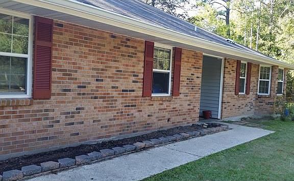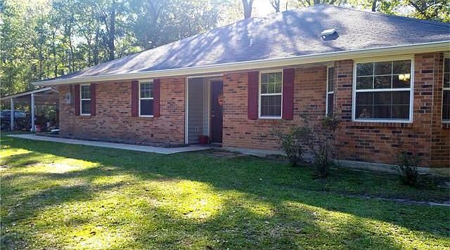 Beautifully renovated 4 bedroom home, nestled on 2.5 acres on a secluded road. Granite counter in kitchen and baths, with new flooring throughout! Kitchen has a bay window and master has French doors opening to the patio. Large 15' X 27' dining/den combo area with a brick wood burning fireplace to keep you warm. 2 car garage & a 3 car carport. Close to I-10.