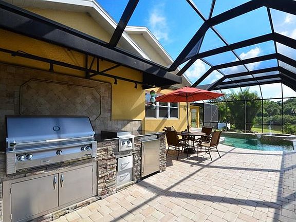 The value of a High Performance Home isn't missed on this home. This home offers comfort, energy efficiency, durability and environmental attention, all which add tremendous value. Lot features views over lakes, forest, preserve & golf course. Replete with views that provide a sense of serenity & privacy. Even out the front of the house has a wooded turn about. Beautifully appointed interior accented with use of granite, wood, crown molding and an outstanding floor plan. Home utilizes the energy from the sun in several diverse ways. The Photovoltaic array system which also is designed to run the pool pump (one of the larger hogs of power) and produces hot water. the PV array combined with the energy efficient HVAC System, new sprayed (soybean based dome) insulation, Dual pane argon/pro solar windows with a solar heat gain coefficient of .25 have been installed, 80 gal solar hot water heater. Absolutely fabulous Outdoor kitchen with propane gas grill. Full patio coverage with screening less than a year old. Drought tolerant Zoysia Grass. Professionally landscaped which provides for utmost privacy and is enhanced with landscape lighting. Flagstone walkway on each side of the house. There are two master suites. Drive way has old world pavers including the sidewalk to the front entrance with a wonderful water fall feature which runs under the path to the front. Buyers will not only enjoy the ambiance but also the high performance items that are built into this home.