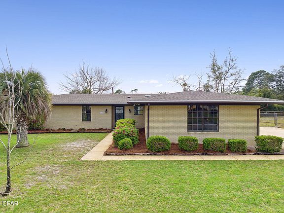 Don't miss this peaceful retreat located on the East end of Panama City Beach. Wonderful 3 bedroom, 2 bath, brick home sitting on a large lot with a fenced-in backyard. Spacious kitchen with island, breakfast bar, ample counter space and storage. Large living room with brick fireplace and beautiful exposed ceiling beans. Separate dining room and bonus room located off the kitchen.