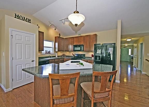 - Kitchen: Breakfast Bar, Center Island, Custom Cabinetry, Eat-In Kitchen, Pantry