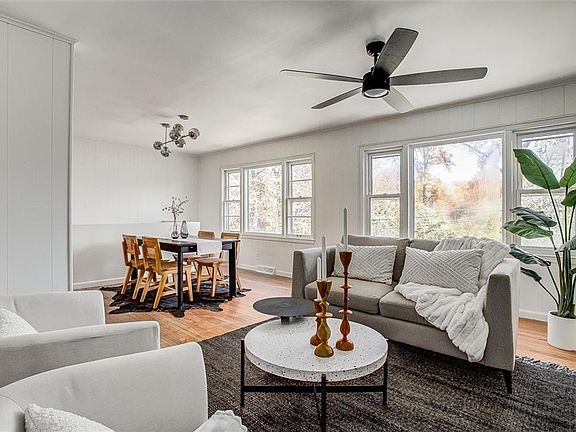 Come see this charming ranch located right off the greens of the neighboring golf course and just a short jump to Antioch Park! You will love the privacy of the backyard where you can even hear the gentle water feature on the course during warm months. Inside is a singular floorplan with 3 bedrooms and 1 bath on the main level and the 4th bedroom and 2nd full bath located on the lower level. A perfect setup for house guests or family members wanting a little privacy from the main bedroom wing. You will love the cozy fireplace and open concept of the main level living area. The bar seating into the kitchen is perfect for entertaining and flows right into the dining area and main living room. Downstairs is an additional spacious and light filled family room with the 2nd fireplace and large sliding doors to the patio and backyard. Two unfinished areas provide ample storage space!