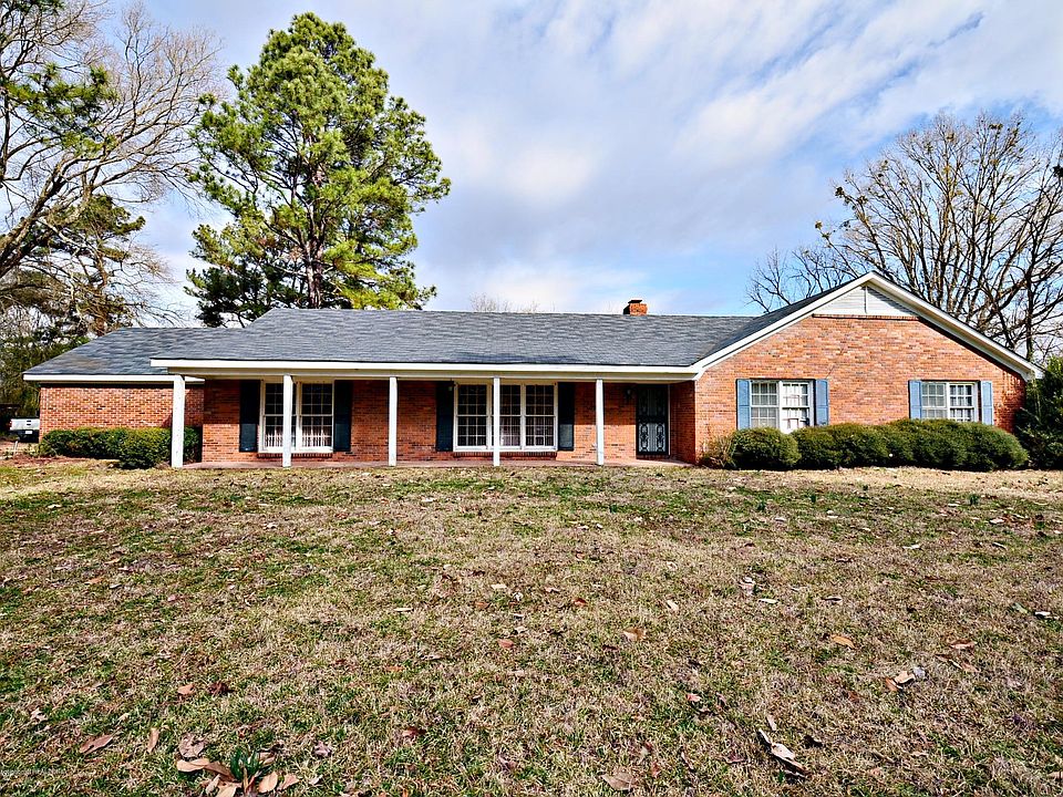 Tucked Away on 18.3+/- acres with tons of mature trees, this home offers 3 bedrooms, 2 full baths with two living areas. The great room has a huge picture-like window that overlooks the back yard and there is also a brick hearth wood burning fireplace. The kitchen has double ovens and a cozy breakfast area. The large dining room is just off the kitchen and has an open view into the formal living room. Down the hall, you will find the large master bedroom that has a private bath along with two additional bedrooms and another full bath. There is a huge cedar closet right outside the master. Don't forget to take a step outside and check out the HUGE 38x22.6 metal storage building and the additional 18.6x22.6 storage building. The front of home has a nice covered porch that overlooks the front