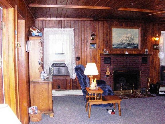 This three bedroom home is loaded with 'up north' charm without losing that comfortable, inviting, feeling of home. Large open living area with a gas log fireplace. Tongue and groove paneling throughout most of the home, with a full wall of windows along the lakeside. The enclosed porch is bright and cheery with a seating area that converts to an additional bed. New carpet through-out. Plenty of storage, including a walk-in closet and a large closet used to house the washer & dryer. Outside a concrete sidewalk leads from the road side to the waters edge and steel seawall. Along the way is a fire pit with benches and a horseshoe pit. Also included is the 70' dock with deck on the end. Not only is the extra large garage the perfect place to store all your toys, but I have also been told it makes a great bunk house for your visiting overflow!