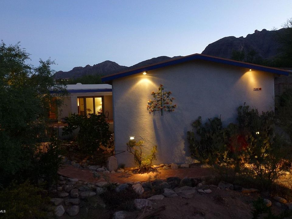 For more information on this property, contact the Listing Agent, Janet DuMont Haber at (520) 918-8855 or janethaber@LongRealty.com. REDESIGNED MasonryStucco+Clad Blueboard/Blown insulation home. Norco Windows/doors,Baldwin Locksets,4 Velux skylights (2 open),New HVAC,CHEF KITCHEN: Custom Cherry Cabinets,2-Subzero Ref/Freez, New SS range,5-burner/dual ovens, Miele DW, pot racks, island + fireplace. GREEN Master Bath, Hall bath-Cherry cabinetry w/granite. Multi-use flex room w/in-suite laundry offers design floorplan alternatives. Natural vegetation and purposeful gardens connected by charming brick paver walkways, intertwine numerous patio areas. Grape vines+Mantis Compost Twin Dual-Chamber Composter. Location ambiance abutting Sonoran Desert open space/spectacular sunset + mountain views on cul-de-sac road. Beautifully created and maintained. Close to La Encantada and all foothills ammentities. A UNIQUE QUALITY HOME.