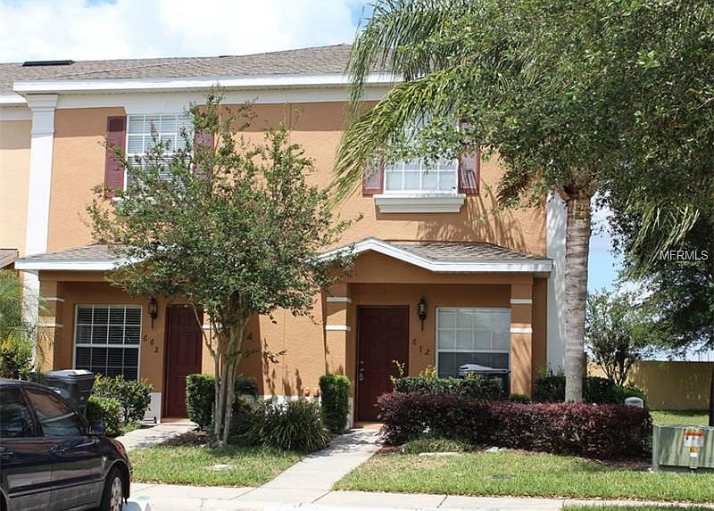 Attractive two story, two bedroom and two and a half bath townhouse 10 minutes from Disney. Covered entry way with neutral exterior paint and screen enclosed porch in rear. Ceramic tile and carpet flooring. Open floor plan and volume ceilings. Kitchen includes breakfast bar overlooking dining and living area. Inside laundry utility room. Minutes to major roadways making easy access to Walt Disney World, Downtown Disney, Sea World, Universal Studios, Universal City Walk and LEGOLAND, many golf courses, recreation and both the West and East Coasts beaches. Community amenities include a community pool, cabana and jogging & walking trails. Fantastic investment or second home in the prime rental area of Orlando.