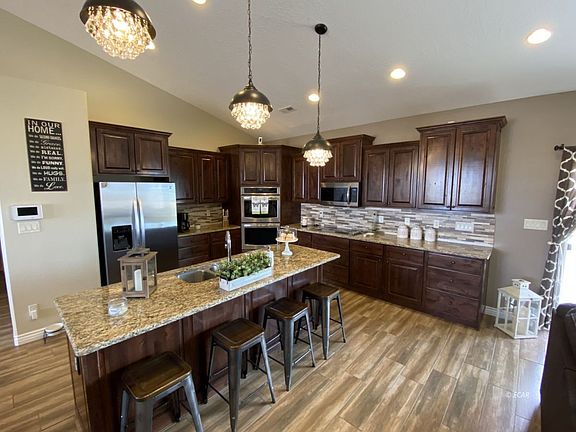 Amazing views! This 4 bedroom / 2 bath home sits on a corner lot with over 2 acres of land. The kitchen features ample cabinet storage, granite countertops, a double oven, and an island. Tile flooring in the kitchen, dining room, bathrooms, and laundry room. Carpeting in all four bedrooms and the living room. The master bath features a walk-in shower and a separate garden tub, double sinks, and granite countertops. The Master bedroom has a large walk-in closet. The exterior of the home features a covered patio for entertaining.