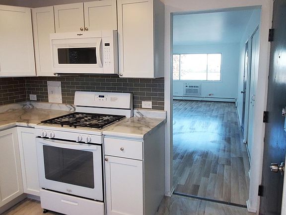 Newly renovated unit with laminate floors throughout, newer kitchen and bathroom, A/C units, plenty of closet space and storage unit. Excellent location with security access system. 2 assigned parking spaces, heat, water and gas included. Laundry facility on-site. (We do not review applications from individuals that have not scheduled to see the unit.) Renter is responsible for electricity. A minimum credit score of 650 required to apply. The background check is processed by Zillow and the site charges a non-refundable fee. 4 persons maximum per unit allowed. No pets allowed.