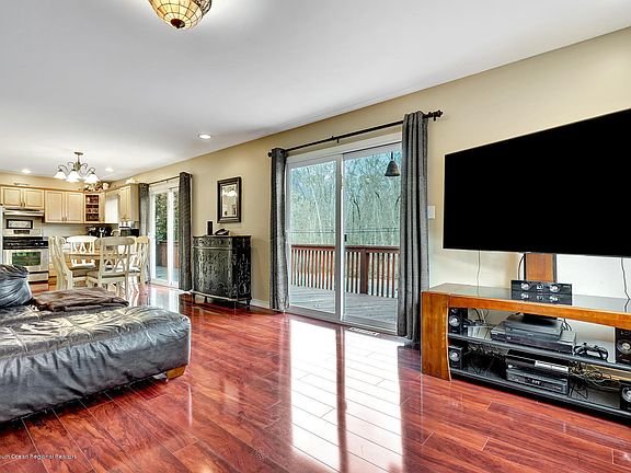 Escape the everyday & make this your HOME. This home is like no other. It is unique & so perfect, especially at this price. Parking is no issue with an oversized circular driveway. Custom landscapes & WRAP AROUND DECK make this home fun & great to entertain. As you enter the lower level you will be in the best room to throw a party. Pool table, wood burning stove, an area to lounge & watch TV... YOU NAME IT! Go upstairs to the bright living area. Many windows, 2 sliding glass doors & 2 additional doors leading to the wrap around deck. Eat kitchen/ dining area, large living room & 3 bedrooms. Full bath on the 2nd level * Recessed lighting, appliance package & all window treatments are included. Brand new custom paver patio, swings & Shed. New leach-field being done, Pool being removed.