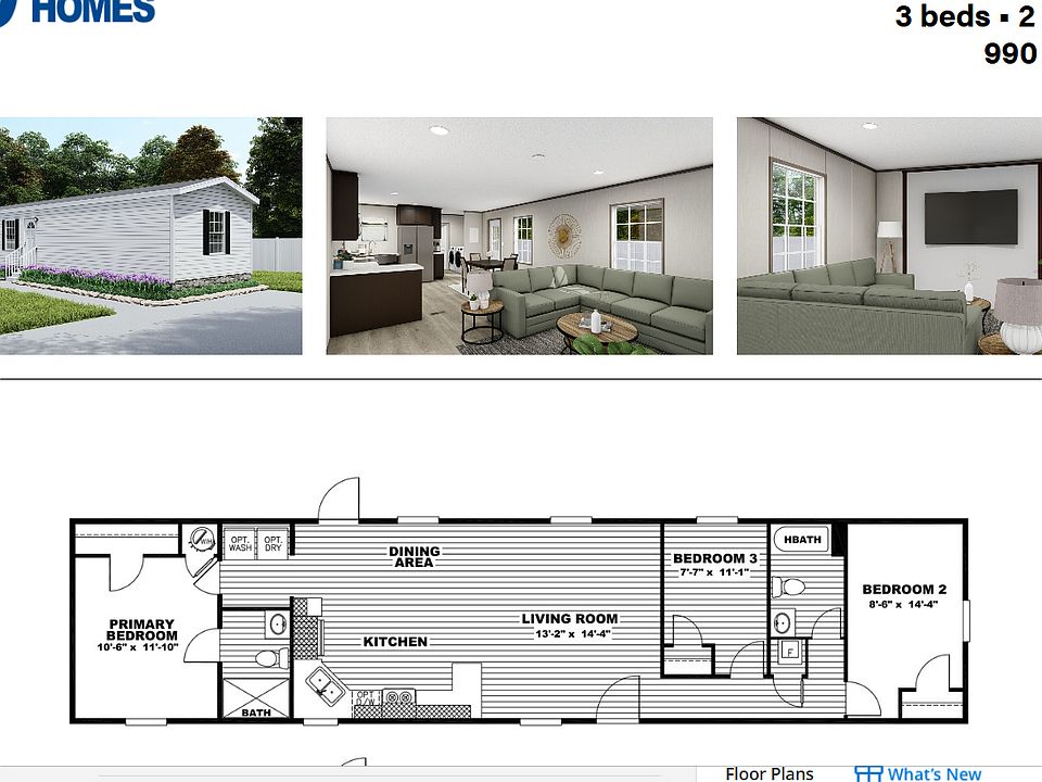 - Total interior livable area: 990 sqft