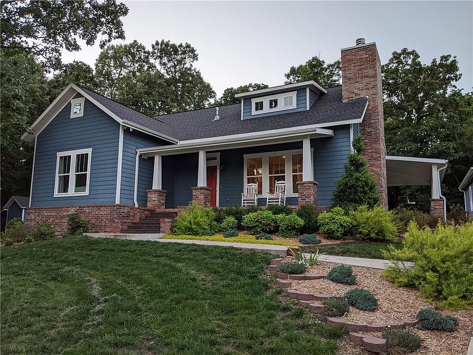 This charmer has the best of all worlds - 1920's bungalow style but with modern conveniences AND the privacy of 5.5 wooded acres but less than 10 minutes from I49! Great floor plan with real 3/4" hardwood floors throughout the main floor, a beautiful wood burning fireplace, and roomy kitchen and dining area perfect for entertaining. Upstairs you'll find a 2nd living room with playroom around the corner, a large office that could be used as a bedroom, den, school room, etc. Large windows bring in the outdoors, and, in winter, allow you to take in the view of the mountains! Vacation every day on the large porches, which provide natural light inside without the heat. Other unique features include an 5'x8' in-ground storm shelter under the stairs, oversized detached garage deep enough for any vehicle and room to spare for a shop or exercise area, AND approx 400sf heated/cooled finished room above garage (NOT included in total living area sf) with full bath under the stairs! Nearly 3,700sf of finished area total!