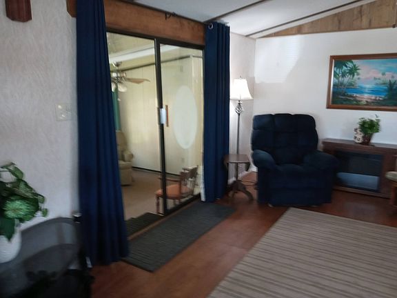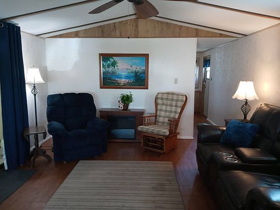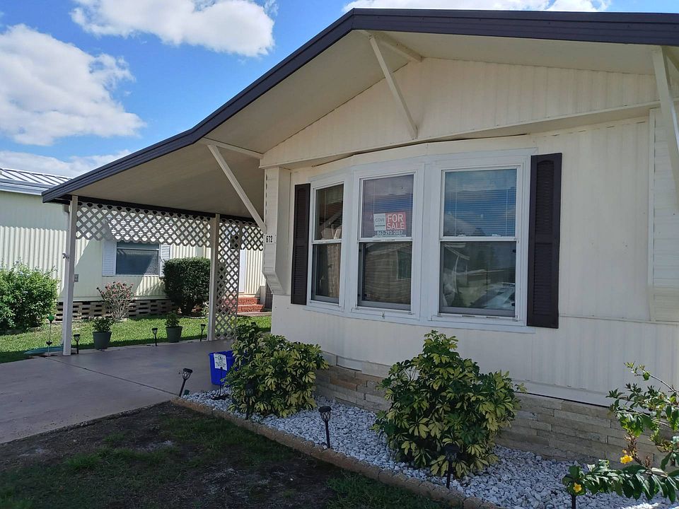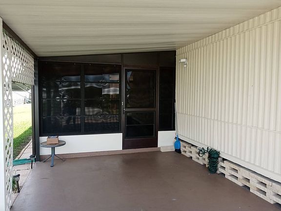 This home is situated in beautiful gated Hidden Cove West. You enter the glass Florida room from the driveway. At the end of the Florida room, a storage unit houses the newer washer and dryer. There is a sliding glass door to the living/kitchen combo. The kitchen is front-facing and has new cupboards, stainless steel appliances, and a kitchen table in front of the front windows. There is laminate throughout the home. There are two nice size bedrooms with lots of closet space. The a/c is a newer unit, and the roof is in excellent shape. The home is completely furnished and will not last long.