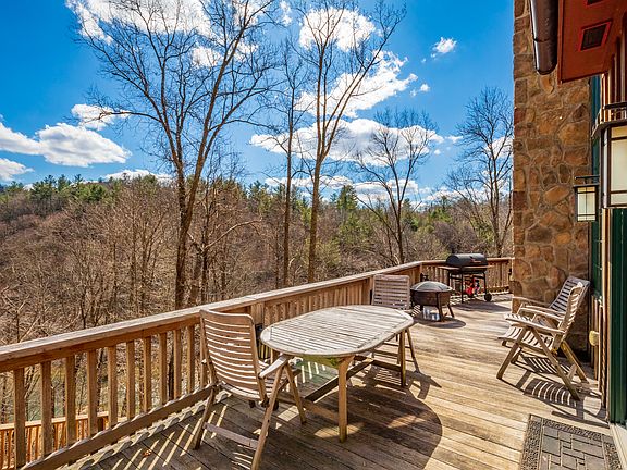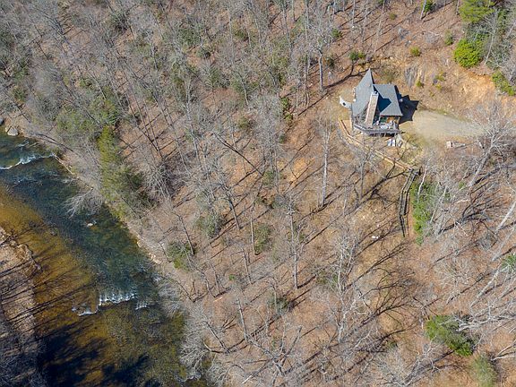 This home is truly one of a kind. It is known as Peace Lodge, and when you get here, you will not be disappointed! If you have an appreciation for excellent architecture, this home is a must see! This Gothic cabin was constructed with exotic woods, and the highest quality materials. You will be astounded with the documented construction process for it. You are deeply secluded with a mountainous 27 acres that is vast in wildlife, beautiful wildflowers, and mountain laurels everywhere. There are steps that lead from the house down to the beautiful bold Big Reed Island Creek frontage. You can go kayaking, canoeing, trout fishing, or just sit and enjoy the water. The home is quality inside and out. The upstairs master suite has an airbath tub. The downstairs suite offers an aromatherapy steam shower as well. This 3 level retreat offers a bedroom and full bath on each level. It also has a great 10+ year vacation rental history, and it's fully furnished with upscale furniture! Price is firm.