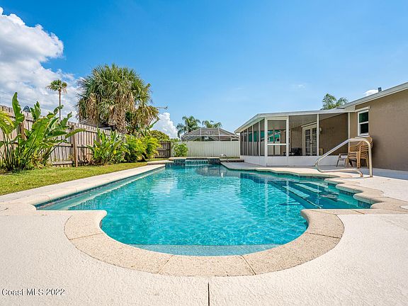 ** POOL HOME ALERT** Lots of charm and love poured into this West Melbourne 2BR/2BA home. The curb appeal will charm you the moment you drive up. The floor plan is nice and bright with spacious rooms. The Kitchen is updated w/ white cabinetry and granite countertops, and the bathrooms are nicely updated w/ newer vanities, vessel sinks, and granite counters. Equipped w/ hurricane impact-rated windows, doors & shutters. New Interior doors & hardware. R36 Blown insulation added to keep your home cooler. Newer electrical panel w/ surge protector. And, at last, the pool & backyard. The pool/ heated spa was built as a show pool for all you pool lovers, and it's substantial in size, w/ the deepest part at 8.5 ft deep. The backyard is privately fenced w/ a double gate, a large screened-in porch and plenty of room for your RV or boat parking! Conveniently, located to shopping, restaurants, beaches, and much more!