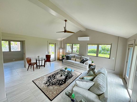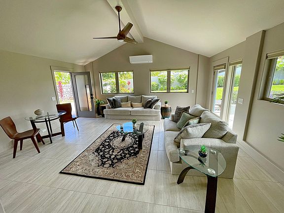 Step inside to cool tile flooring, granite countertops, and an open, breezy floor plan with vaulted ceilings and Pella windows that invite in the natural light. Enjoy your mornings or evenings on two private lanaisone open-air, one coveredideal for relaxing with coffee or hosting casual get-togethers. There is so much room to spread out and relax in privacy on the property.