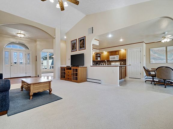 Located in the coveted Moonridge Falls Subdivision in North Grand Junction, this cozy ranch-style home is just minutes from an array of amenities such as shopping, restaurants, and Canyon View Park. Step into the foyer and be welcomed by the wood-floor entry and spacious living room, highlighted by vaulted ceilings and a gas fireplace. Gather and host in the large kitchen with solid surface counters, formal dining room and breakfast nook. Enjoy cool summer nights on the large, east-facing, covered patio that opens to the beautifully manicured backyard. This split floor plan home creates privacy for the large master suite with attached office space. Other highlights include large utility shed, garden beds, 3-car garage with epoxy floors, BreezeAir cooling, new roof and massive RV parking. This is your next place to call home!