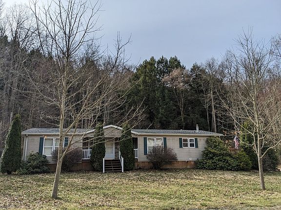 3 bedroom/2 full bathrooms/walk in closet/large kitchen w/wet bar and separate dining area. This has new flooring and sub flooring throughout. Vinyl plank flooring, very nice! Washer/dryer hook up in back mud room. Stream runs the side border. Tri-County electric/internet, propane gas stove/fireplace. Interior is laid out nice, open concept from kitchen>Dining room>living room which has views from the attached deck w/access via sliding doors. Plenty of storage and deck space for entertaining guests or just enjoying the outdoors. Driveway is partially paved. "Pre-Approval needed prior to showings. Sits on concrete slab, blocks/tiedown.