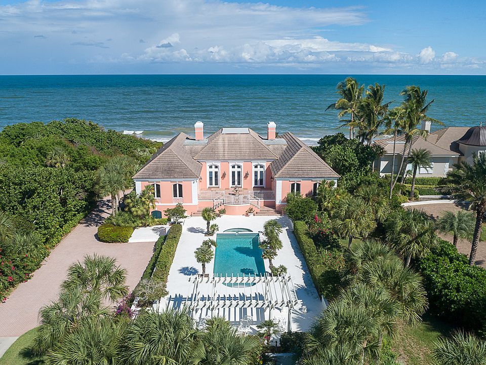 Located on a spacious 1.68+/- acre lot, along a beautiful stretch of the Treasure Coast is this gracious 4BR/4.5BA residence. Indulge in tropical breezes, unmatched sunsets and 130+/- feet of direct ocean access from your very own dune cross-over. A tropically landscaped pool with gorgeous pergola creates an inviting area for total relaxation under endless blue skies, not to be outdone by dual outdoor marble patios that provide respite. Marble floors and custom details add warmth and character to the impressive architecture of this 6,342+/- GSF home. Enviable features include an expansive living room with fireplace, stately columns and voluminous windows that capitalize on panoramic views. An island kitchen with dining and family room, generous master suite with soaking tub, two upper-level guest suites and a lower level recreation room/ optional 4th bedroom and ample storage complete the picture.