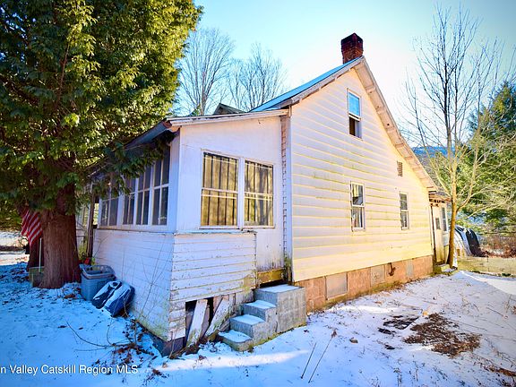 Exciting Fleischmanns Riverfront opportunity! Gut renovation begun but never completed. Bring your vision, experience and tool belt and you'll end up with a charming, spacious and well lit abode flanked by the Bush Kill Creek and the majestic Catskill Mountains! Close to the area's best skiing and endless recreational opportunities. A handmade small pond with flagstone border, a large hoop house frame and room for a nice garden start to define the potential for an active and rewarding outdoor space all year round. The second floor of the home is already close to being finished and the first floor is already gutted for you featuring a large wood burning stove to get you started! A sunny enclosed front porch invites you in and a workshop area in the back leads out to the yard. Get the existing solar panels and inverter back up and running and save on those pesky utility bills! Time to put your skills to use! Bring your enthusiasm and offers now!