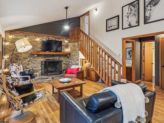 - Features: Fireplace, Wood Floor, Cathedral/Vaulted Ceiling