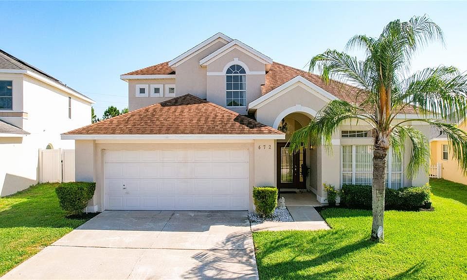 One or more photo(s) has been virtually staged. Best Lot in Lake Davenport Estates. No REAR neighbors…..just a green belt and beautiful Northeast Regional Park. The yard and interior condition reflect pride of ownership. The inside and ceilings were painted in May as well as the carpet and tile cleaned. The high ceilings, and open floor plan allows for a lot of natural light. The master bedroom and guest bedroom are both downstairs and 3 bedrooms upstairs. Lake Davenport Estates has a pristine community pool, tennis/pickleball & basketball courts as well as a playground. It is zoned for short term rentals but there are a lot of permanent residences. The attractions, restaurants, shopping and schools are close by. Reroofed in 2013. AC installed 2013.