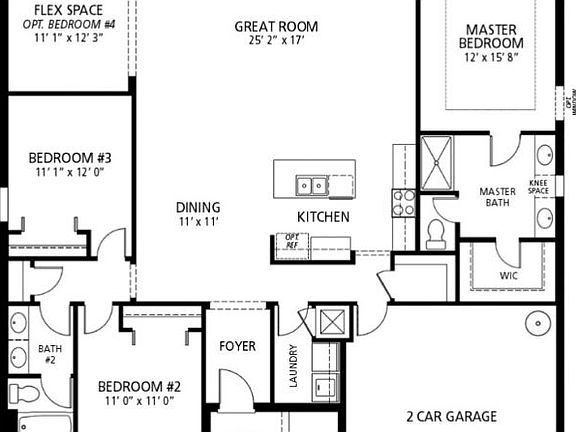 The one story home that has it all,space and luxury combined with functionality. As you walk into the home you're greeted with a large great room andkitchen space that can host any size party or family. The home doesn't stop there with up to fourbedrooms the home can be used for a great first home or a home that can helpyour family grow with its needs. Theelegant layout gives a masters suite oasis. The master suite takes half of thehome, featuring a large bedroom, walk in closest and a bathroom to get readyfor the day or end a long day. TheStratford is a perfect fit for a growing family or a family that enjoys companyof any size. Home prices are reflective of "On Your Lot" pricing. We have many lot locations, sizes, and prices to choose from, if you desire to build on one of our home sites. See sales representative for details.