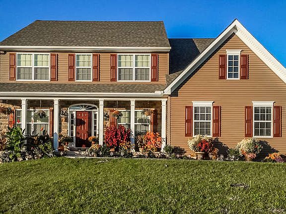 This 3500 square foot "Ethan" model home in located in the desirable Carriage Park subdivision (Palmyra Schools). Offering 4-5 bedrooms and 3 full baths, this home has tons of upgrades including a natural gas fireplace in the large family room, open kitchen with huge walk-in pantry for storage, upgraded appliances, and ten foot island with corian counters for preparation and entertaining. Breakfast area walks out to elevated deck overlooking the large fenced-in yard. The formal dining room showcases upgraded trim work and the 1st level office could service as a guest or 5th bedroom with an adjacent full bathroom. Upstairs, all bedrooms have a walk-in closet, and the master suite is sure to impress with its two huge walk-in closets, and "Venetian" bathroom with large, tiled, walk-in shower and two vanities. Even the laundry is conveniently located off the 2nd floor hallway. Conveniently located within an easy commute to Hershey Med, Lebanon, Lancaster, Harrisburg, and Indiantown Gap. Special Financing Incentives available on this property from SIRVA Mortgage.