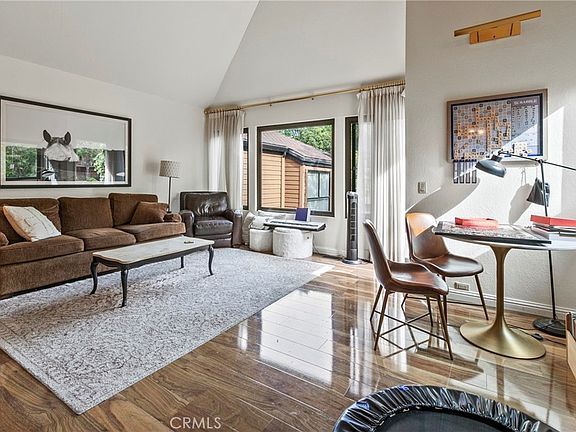 Nestled in a picturesque park-like setting of Serrano Sircle lies this 3 bedroom 2 bathroom condo. Upon entry you will notice the beautiful wood flooring underfoot, vaulted ceilings and lots of natural light. The kitchen has been upgraded with custom counters and cabinetry. The large dining room is a great place to gather around the table. An open living space on the second story offers lots of room for entertaining along with a large bedroom and a bathroom. Downstairs is an open primary bedroom with its own private deck for relaxing and unwinding. The guest bedroom also has its own deck to soak up the serenity of this wonderful condo. The spacious two car garage has lots of storage and an epoxy garage floor.