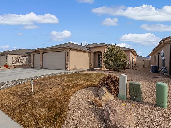 Welcome to 672 Strathearn Drive, a beautifully maintained home in the sought-after Walnut Estates neighborhood of Grand Junction, Colorado. Built in 2018, this approximately 1,882 square-foot residence offers four spacious bedrooms, two bathrooms, and a thoughtful open layout perfect for modern living. The upgraded granite countertops and cabinetry add a touch of luxury to the kitchen and bathrooms, while durable tile and laminate flooring enhance the home’s low-maintenance appeal. With forced air heating and central cooling, comfort is assured in every season. The fully landscaped yard is a true highlight, featuring an 8x20 vegetable garden and a lush lawn, ideal for outdoor activities and relaxation. The oversized three-car garage provides ample parking and storage, while the stucco and stone exterior offers lasting quality with minimal upkeep. Situated on a large lot, this property provides a balance of space, beauty, and functionality. An additional benefit is the potentially assumable VA loan with a 3.25% interest rate, presenting an excellent opportunity for eligible buyers. Located near schools, parks, and local amenities, this home combines convenience with community charm. Don’t miss the chance to own this well-kept, low-maintenance home with premium upgrades and a picturesque yard. Schedule your showing today!
