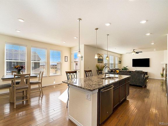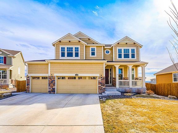GORGEOUS HOME LOCATED IN A WONDERFUL COMMUNITY!! The minute you drive up you will fall in LOVE with beautiful curb appeal and cul-de-sac location!!! BEAUTIFUL kitchen with granite countertops, 42" custom cabinets, gas stove, stainless steel appliances, large kitchen island. Walk-in pantry, mudroom with built-in bench seating! Huge dining area, great for large kitchen tables and holiday gatherings! You'll LOVE the Mountain views AND views of the City from the comfort of your own kitchen!!! Main floor office with French doors! Cozy family room with gas fireplace perfect for those snowy nights!! Upstairs features 4 spacious bedrooms PLUS A LOFT!! Luxurious master suite with coffered ceilings and 5 piece master bathroom with walk in shower and oval tub!! Large walk-in closet!! Laundry room is conveniently located upstairs close to all the bedrooms! Enjoy entertaining in your FINISHED WALK OUT BASEMENT with kitchenette, additional bedroom and spacious bathroom with walk in shower, custom tile and vanity! Make the basement your own private game room, work out room or additional family room!!! From your basement walk out to your own private backyard oasis featuring a stamped concrete patio, built in pergola with a firepit! Plenty of trees and a leveled grass area to set up summer games and parties!! 7' privacy fence!! BRAND NEW JellyFish lighting on the exterior of the home! 9' ceilings, wrought iron staircase, solar panels, engineered wood flooring throughout! Too many upgrades to list!! Plenty of storage!! OVERSIDED 3 CAR GARAGE! Close to schools, parks, trails, shopping, restaurants, Marshall Lake, Trail Winds Rec Center & Riverdale Dunes (Two 18-Hole) Golf Courses and more! Steps away from the brand new King Soopers!! The Amber Creek neighborhood has a park, green space, and trail system!! Don’t miss this AMAZING opportunity to own a meticulously maintained “LIKE NEW” home without the long wait of a new build! Book your showing today!