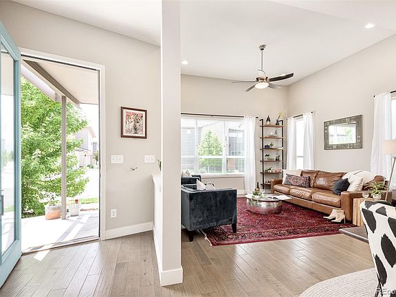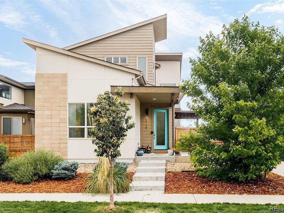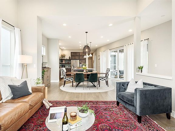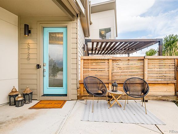 Situated in a desirable end placement on a quiet block in Midtown, an inviting front porch welcomes residents further inside to a light-filled layout. This coveted floor plan offer a spacious living area drenched in brightness from vast windows. Delight in hosting soirees w/ guests in a dining area illuminated by a pendant light fixture. An upgraded kitchen boasts quartz countertops, stainless steel appliances, a new tiled backsplash and an expansive center island. A main-floor office offers a private home workspace while ample storage is provided in a custom mud room. Retreat upstairs to find a sizable primary suite featuring a luxurious bath and a large walk-in closet. Two bright secondary bedrooms share a serene dual-entry bath. Downstairs, a finished basement offers flexible living space w/ a rec room and a guest bedroom w/ an egress window. Enjoy outdoor relaxation on an upgraded patio poised beneath a wooden pergola and surrounded by fresh landscaping. Ideally located west of Pecos, just 2 blocks from Trailside Academy. Easy access to hiking, parks, Bruz Beers, and only 10 minutes away from the Highlands.