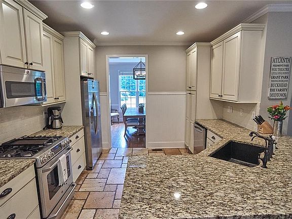 - Kitchen Features: Cabinets White, Breakfast Room, Solid Surface Counters, View to Family Room
