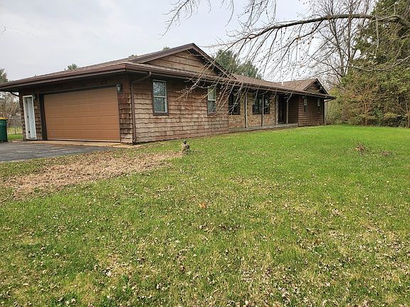 Charming 3 bedroom, 2.5 bath ranch in a peaceful country setting nestled on nearly 3 acres, this beautiful ranch is surrounded by a stunning evergreen tree line for year-round privacy and natural beauty. The spacious living room features a large window with sweeping views of the front acreage. Enjoy a formal dining area and a cozy family room with a sliding door that opens to serene landscapes-perfect for fresh air and birdwatching. The primary bedroom includes a full bath and ample closet space. One of the bathrooms has been beautifully updated and features a relaxing jacuzzi tub. The two additional bedrooms are generously sized. You'll love the wood floors and the inviting kitchen with solid wood cabinets. This home also includes key updates: a brand new roof (2024), a new water heater (2025), and a 90% efficiency newer furnace for year-round comfort. The huge basement is ready to be finished to your liking. Convenience abounds with first-floor laundry and an attached garage. Located in a great area, this home offers the perfect escape from the hustle-your peaceful retreat awaits! Property is being sold As-Is.