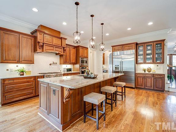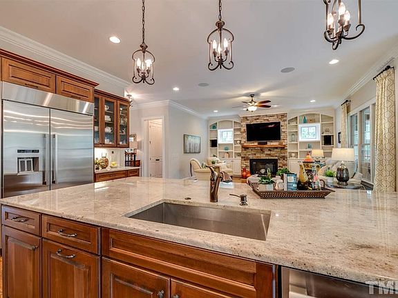 ABSOLUTELY IMMACULATE, LIKE NEW home on a CUL-DE-SAC lot in West Cary's premier neighborhood! LUSH PRIVATE YARD backing to natural surroundings, screened porch, patio w/ water feature & fire pit. BEAUTIFUL KITCHEN w/ large island & Thermidor appliances. 1st fl guest BR, separate office & an open 1st fl plan. HUGE master, ensuite bath & closet. All bedrooms w/ private baths. 2nd fl bonus & finished 3rd fl. Sealed crawl, storage, central vac, dual tankless hot HW, dist audio, irrigation & outdoor lighting.