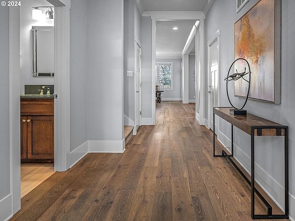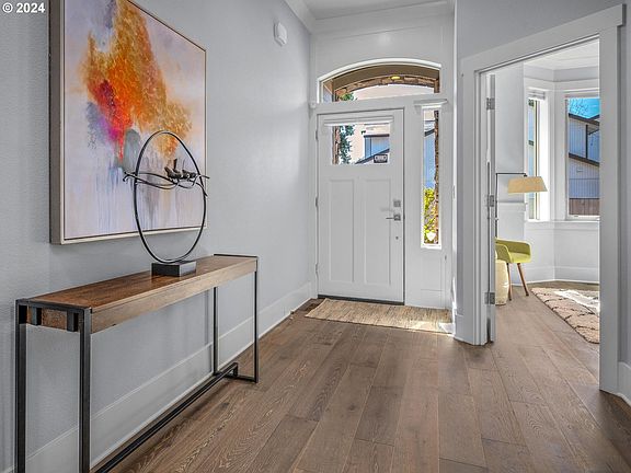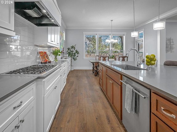 A Beautifully designed open concept home. Spacious rooms, high 10 ft ceilings on main, 9 ft on upper floor,slab quartz countertops, stainless appliances, Large kitchen island w/walnut stain, cherry cabinetry Hardwood floors on the main, Corner Lot, Washington County. Historic Garden Home, New Seasons, Starbucks, Community Rec Center, Ace Hardware, Dogtopia, close access to Moonshadow Park on 68th pl. This home has all the bells and whistles you've been looking for! 5th bedroom is currently an office on the main with a full bath. Hard to find one of a kind!