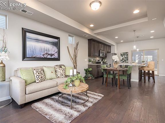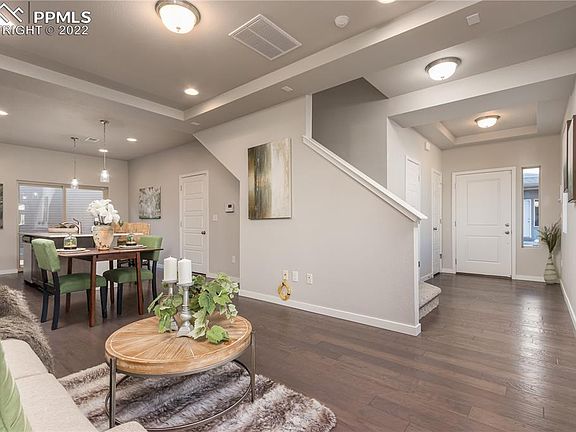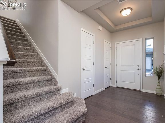 This beautiful Banning Lewis Ranch 2 story boasts 2 bedrooms, 3 bathrooms and an attached 2 car garage. The home welcomes you with high ceilings and brand new carpet. The entryway leads right to the open concept living room, dining area and kitchen. The spacious kitchen offers stainless steel appliances, a pantry and a large island with plenty of space for dining at the countertop. Kitchen also features a walkout to the fenced backyard. The upper level features an open space which could be used as an office or a second living room/family room. Large master bedroom features an en suite bathroom and walk-in closet. There is also a second bedroom, full bathroom and laundry space on the upper level. Wonderful location in Banning Lewis Ranch near shopping, restaurants, and hiking! Enjoy the amenities included with the metro district!