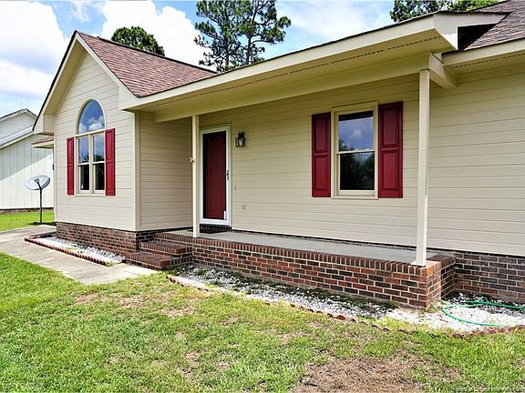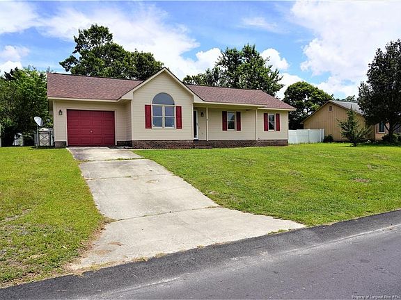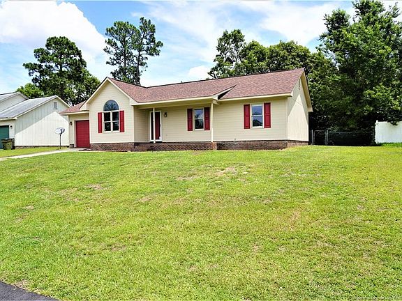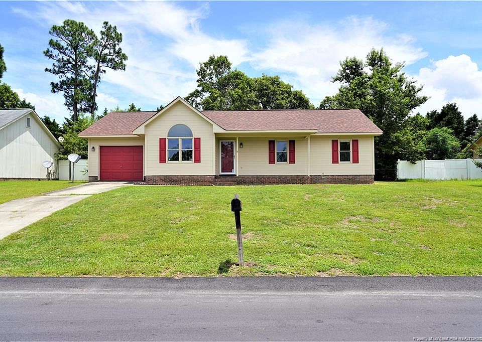 Check out this very affordable 3Bedroom/2 bath ranch home with a single garage and nice covered front porch that is just minutes from Simmons Army Airfield and FT. Bragg!! The foyer leads you into either the formal dining room with cathedral ceiling or the nice great room with fireplace. The galley kitchen has walnut cabinets and a breakfast area with bay window. The Main Bedroom features a walk in closet and its own full bathroom. Come enjoy the fenced backyard with patio and storage building.