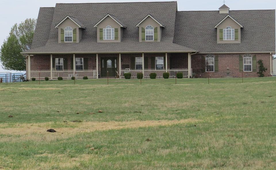 Beautiful 3,100 sq. ft. brick home w/ large 3 car garage on 10 acres with Hwy frontage. Quality home with upscale amenities, 4 BR & 3 full baths. 2 metal barns for equipment and livestock as well as a corral to to work livestock! Tack room located in the first barn. Back Barn is 100x30 with 26x30 insulated shop. This home is a MUST SEE! Less than 5.5 miles to Grove