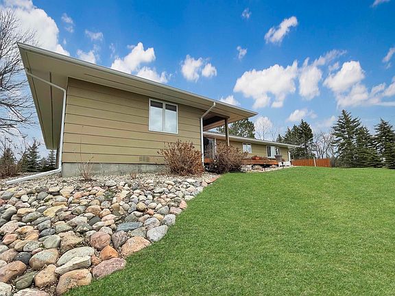 A beautiful slice of country living, just outside of Minot in Country Club Heights. This home offers main floor living accomodations and plenty of room to enjoy life. 3 bedroom home with a 4th room, off the kitchen, that can become whatever you need it to be. The master has 3/4 bath and sliding glass door entrance to the lovely deck. The views out the windows and sliding glass doors is priceless, as well as the natural light invigorating and refreshing. Alongside part of the yard is a portion of a fence to offer more privacy to the home. Enjoy the newly installed side patio, flower bed, and the freshly stained deck off the back of the home as you overlook the beauty of the valley. The grand stone fireplace is a masterpiece of this home and offers two propane fireplace units, one for the family room, and the other for the dining/living room. This home has dual heat to use as you prefer, with forced air and central air, or electric baseboards if desired. Beautiful cabinets in the kitchen, great flooring throughout, an amazing laundry that provides an extra bathroom and space for use as a mudroom just off the garage. The garage houses the electrical panel in a small room off the back. The basement offers a great place for storage.