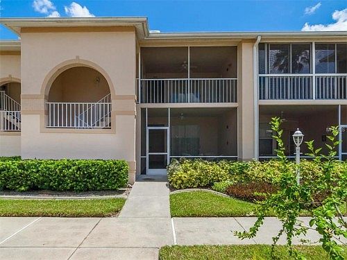 Tara Golf & CC. Excellent opportunity for a 3BR, 2 BA, 1 car garage first floor condominium unit. Nicely updated and turnkey furnished with exceptional lake and golf course views. Updates include quartz counters, raised panel white cabinets, wood laminate and new carpet flooring, updated bathrooms with new tile, quartz counters, large garden tub with shower, and a walk-in tub in the guest bathroom. The Tara Clubhouse Verandas are located across the street from the beautiful Tara Golf & Country Club private clubhouse, community pool, tennis courts, and fitness center. The condo conveys with class "A" golf membership with the following fees $3,500 one time capital contribution, $391 a month for membership, and $60 per month for food. Tara Golf & Country Club membership is an inexpensive opportunity to be part of a first class golf course and club. The community has easy access to gourmet restaurants, prime shopping, and beautiful Suncoast beaches. Call today for a showing.
