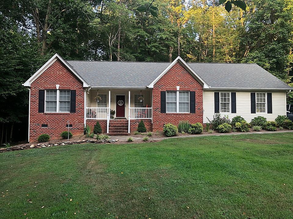 Come see this fully renovated, turn-key home with split bedroom floor plan and LOW county taxes. Master suit with walk-in closet, jetted tub, tile floor, and separate shower. New interior paint, lighting, and faucets throughout. Kitchen with all stainless steel appliances purchased new in 2017, granite counter tops, and subway tile backsplash. Hardwood throughout the main living area with carpet in bedrooms and hallway. The home sits on a little over an acre with quiet outdoor spaces such as the newly refurbished deck, fire pit, nice front porch, and large front yard. New heat pump installed in 2014 and a new garage door installed in 2016. For more information, call 336-339-6938. Will pay up to 3% commission to buyer's agent.