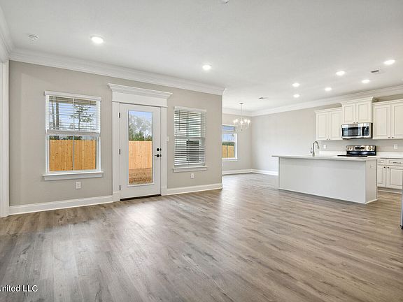 Nestled in the A-Rated, Ocean Springs School District, the Dune French Country offers the best of open concept living while not sacrificing any of the storage. Step into this beautiful 4-bed, 3-bath two-story home featuring luxury vinyl flooring, quartz counters, and GE stainless appliances. The kitchen is a sleek culinary haven with included fridge. Enjoy natural light in the open living space. Blinds included on all windows. Upstairs boasts a spacious loft that makes for the perfect bonus space. Finally, this home overs a spacious covered outdoor patio perfect for entertaining or watching the sunset.