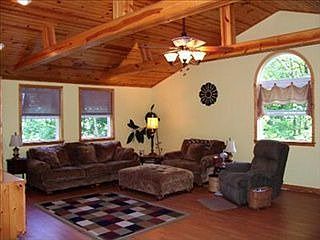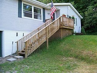 Wonderful ambiance and beautifully upgraded home has much to offer the discerning buyer. This move-in condition single story w/3 bdrms offers an incredible Great rm w/knotty pine vaulted ceiling, hardwood flr, built-in shelves & cupboards; a formal Dining rm w/French doors leading to the outdoor deck; a formal fireplace Living rm + more! The walk-out lower level to garage could be easily finished too! Newer upgrades include neutral carpeting recently installed; heat pump; C/A; hot water tank; Well Mate holding tank; vinyl siding & vinyl tilt-in windows. Nestled on 1+ acres w/wooded views & privacy makes this home irresistible!