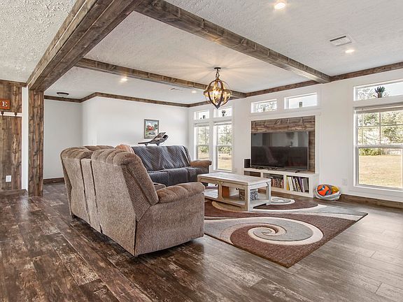 Beautiful home on 1 acre of land. This home was built in 2020 and is practically new. Large, spacious, and open floor plan with a modern look! The master bedroom has his and her sink, stand in shower with glass partition and a sit in tub. The kitchen has upgraded shaker cabinets, kitchen island, and farm house sink. There is a detached 24x45 garage with large roller doors to accommodate tall RVs, boats, and vehicles. On the back of the garage is a covered roof area perfect for a tractor, boat, or trailer storage. This home features a water softener system, well, metal roof, and septic. The entire back yard is fenced for you pets.