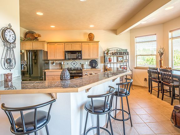 Experience panoramic views and brilliant sunsets from this well-appointed custom built home. 3000+ sqft. 3+bd/3 ba Eagle Ridge home. Great Room with gourmet kitchen - granite, gas stove, informal dining + separate formal dining area. Open plan has a gas fplace and access to lg. deck. 2 main floor bedrooms include lovely mstr suite w/ over-sized jetted tub. The lower level has a 3rd and possible 4th non-egress bedroom + walk-out to lg patio from rec room. Pro landscaping and outdoor spaces to enjoy the view.
