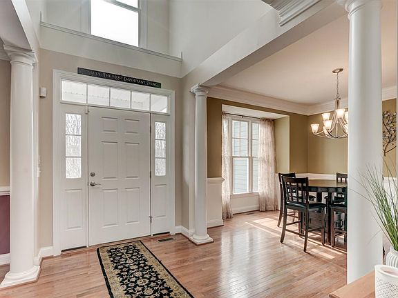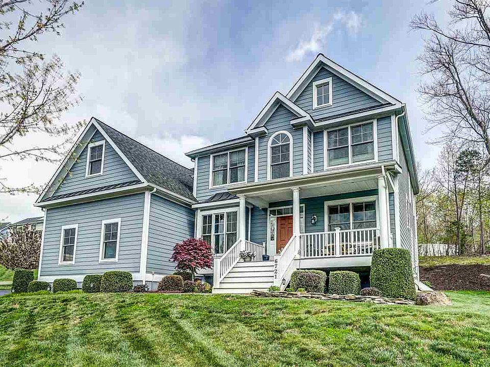 Beautiful 5 bedroom corner lot in Creekside-Old Trail feels like private living within walking distance of restaurants and shops. Gourmet kitchen with granite, extended cherry cabinets, stainless appliances including double-oven, new microwave and morning room is perfect for every entertainer. Main level has hardwoods throughout and ceramic tile is in all bathrooms. Soaring 2-story great room with walls of windows is full of cheer. Enjoy summer evenings on the rear private patio. Main level features a guest room, full bath, and laundry/mud room with tons of built-in cabinets. Upstairs there is a spacious Owners suite, and three additional bedrooms. Just across the street are walking trails, wooded common area and creek.
